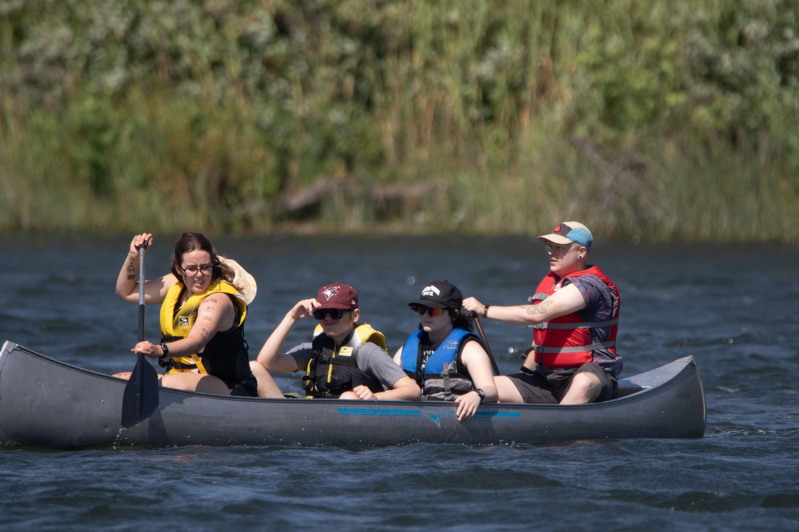 The theme this summer was “Knowing God and Growing in Faith,” following traditional liturgy to explore how we know God and grow in our faith through prayer and praise, confession and grace, passing the peace, communion, and sending/blessing. The theme verse for the curriculum was Romans 8:38-39: “For I am convinced that neither death, nor life, nor angels, nor rulers, nor things present, nor things to come, nor powers, nor height, nor depth, nor anything else in all creation will be able to separate us from the love of God in Christ Jesus our Lord.”Nate Hastings-Fuhr (Home Street)(sterning the canoe) served with Fiona as summer program director at Assiniboia. “This summer was full of energy, joy, and growth for campers and staff alike,” Nate says. “I loved watching friendships form and seeing campers step outside their comfort zones to try something new.”